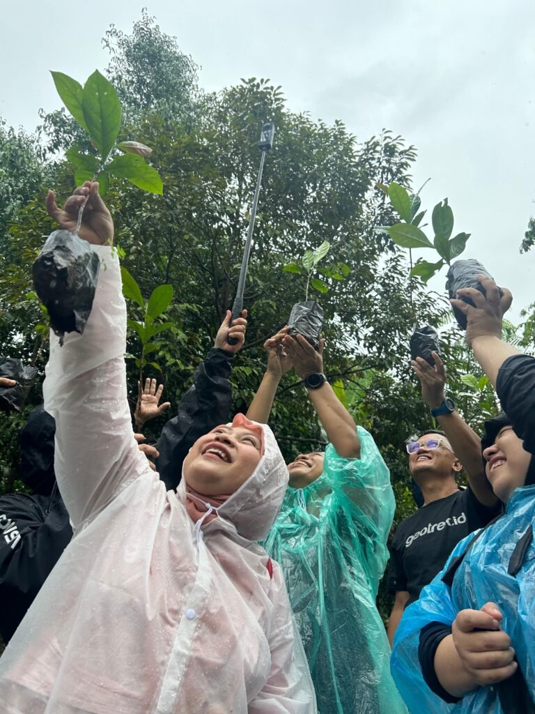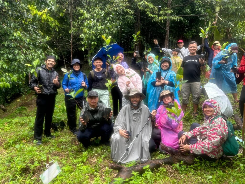 Di tengah perjalanan kami sampai pada suatu lahan terbuka yang sudah terdapat lubang-lubang tanam. Ternyata kami semua diberi 1 bibit kopi Liberika untuk ditanam di lubang-lubang tersebut. Inilah upaya dari para petani Citaman Lawangtaji untuk melestarikan hutan kopi dan menjadikan Citaman Lawangtaji sebagai desa wisata yang bermanfaat bagi masyarakat dan lingkungan.